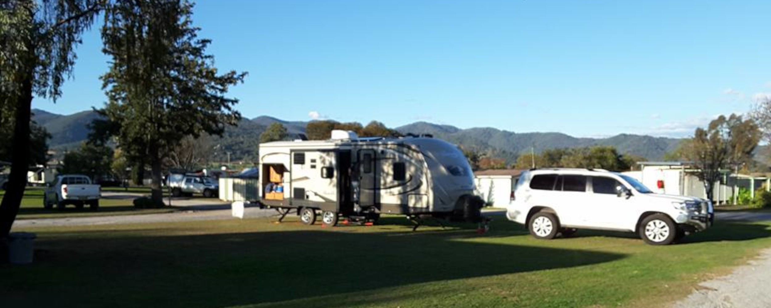 Accommodation options include comfortable Cabins, Onsite Vans, together with level, grassy and treed Powered and Unpowered sites for caravans, motorhomes or tents. The grounds are level and very quiet.