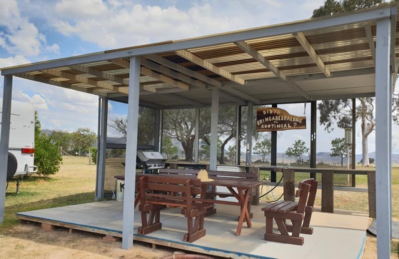 Two camp kitchens and magnificent views down the valley to the Moonbi Ranges.